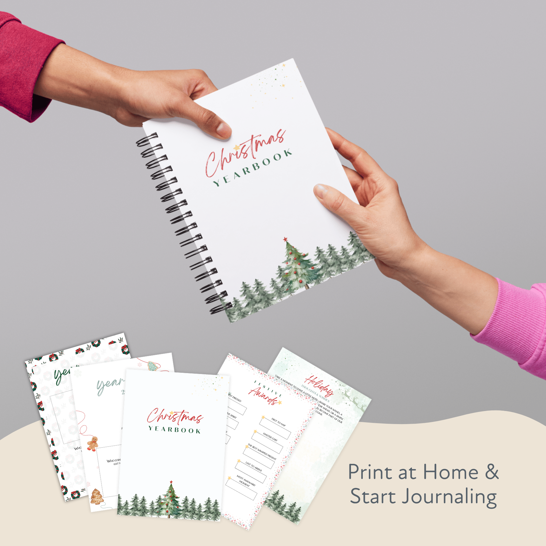 The Christmas Yearbook is available in your choice of hardcover or softcover, both made with high-quality materials that will last through the years. Also available as a digital download—perfect if you want to print at home or gift to someone far away.